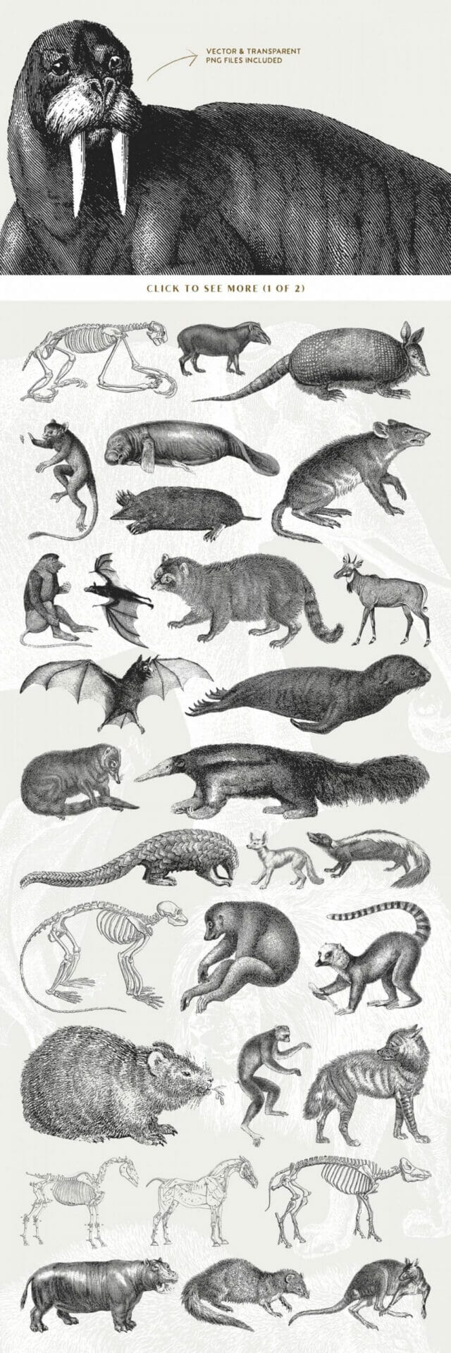 54 Handcrafted Mammal Illustrations