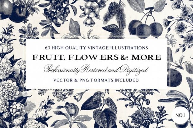 63 Fruit & Flower Illustrations No.1