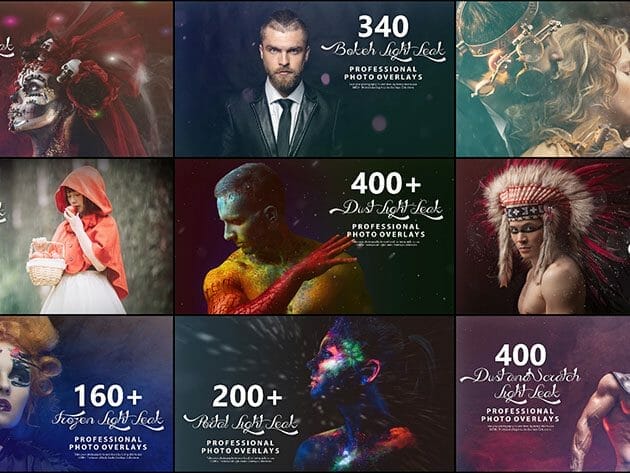 Give your photos a unique touch with this amazing bundle of over 10,000 Professional Light Leaks Photo Overlays. This massive collection has a variety of light leaks photo effects that will help you to achieve the perfect portrait effect that you were looking for. These overlays come in 4K resolution, commercial & personal license and work with all major design tools like Photoshop CS5+, Affinity, GIMP, and Corel PaintShop Pro.