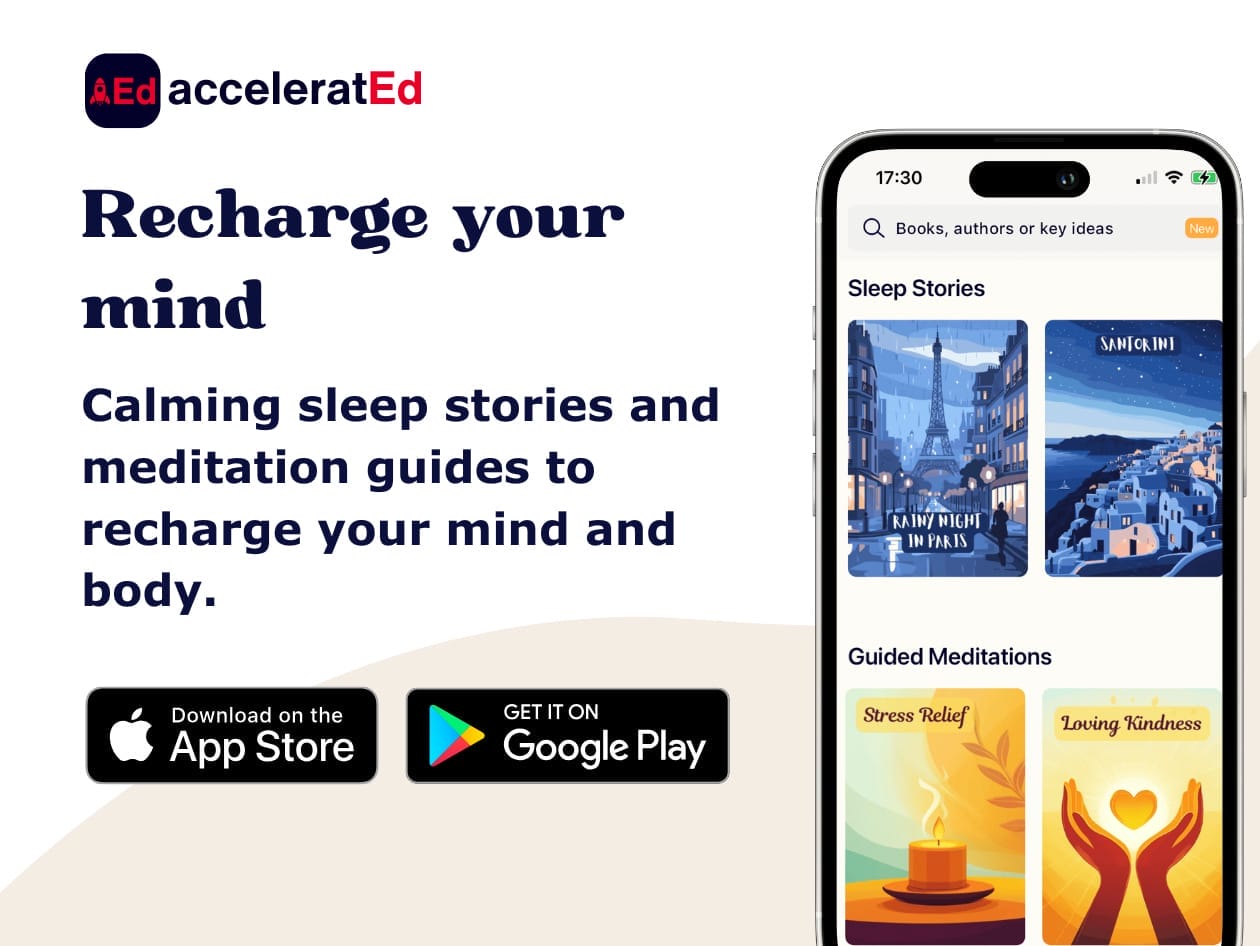 But growth isn’t just about learning—it’s about balance too. That’s why Accelerated offers calming sleep stories and meditation guides to recharge your mind and body.