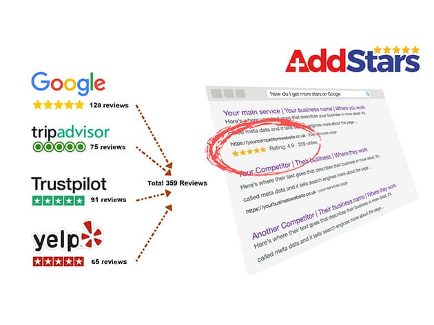 AddStars is an innovative and comprehensive review aggregation tool that provides a range of benefits for businesses. Its unique approach to collecting and displaying reviews from multiple platforms in one place makes it a powerful tool for boosting your online visibility and reputation. This means anyone searching the internet for the services or products you provide will see ALL your reviews, before they visit your website.