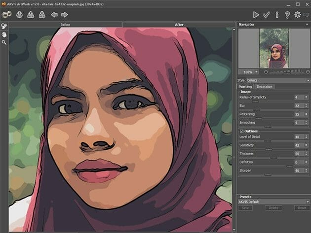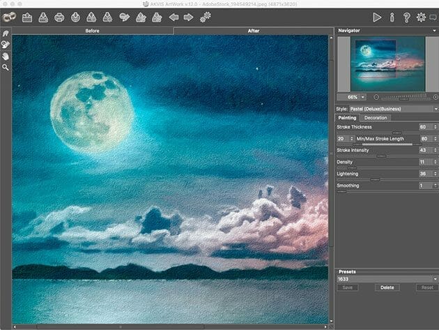 AKVIS ArtWork is an ideal solution for your creative expression! Combining advanced technologies with an artistic approach, the program is represented as an impressive creative suite and a perfect virtual artist. The transformation of a picture into a painting happens before your very eyes — you can follow the birth of a work of art in real-time! The software offers the most simple and versatile way to add artistic effects to photographs. AKVIS ArtWork includes these painting and drawing styles: Oil, Watercolor, Gouache, Comics, Pen & Ink, Linocut, Pastel, and Pointillism; which can be used separately or in combination.