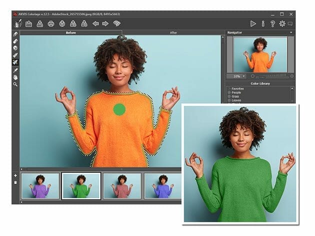 AKVIS Coloriage manipulates the colors of an image: from colorizing old black and white photos from your family album to replacing colors in your color photos. It creates natural-looking colorization in a quick and entertaining manner. It works equally well for coloring portraits, landscapes, fashion, and still life. The skin, sky, verdure, and tree color patterns help users to select realistic colors for their pictures. Coloriage is as easy to use as a coloring book. No layers manipulation, no complicated techniques, no more hours of frustration attempting to get just the look you want – everything is done with a few brush strokes.