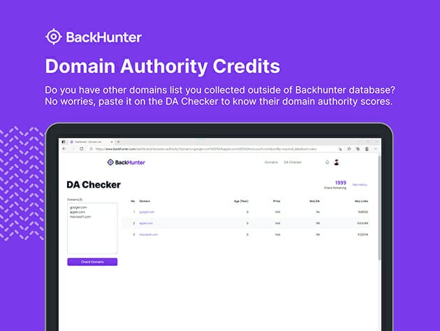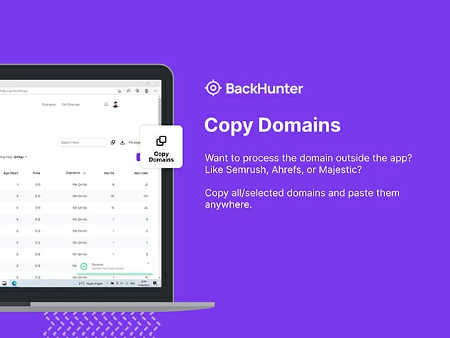 Finding a good quality domain manually from millions of them is time-consuming. Backhunter provides a domain database and the tools to filter domains with good SEO metrics for you.