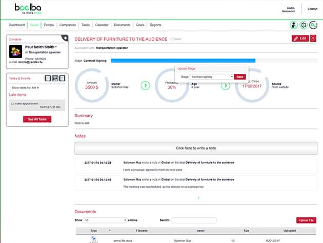Running a business is tough, and effectively managing every aspect of your business can help your sales and growth significantly. Thankfully, Boolba is here to help you with that! Boolba is a beginner-friendly CRM platform with an intuitive and easy interface. Manage your leads, sales, marketing, clients and documents in one platform, increase employee productivity and performance, set tasks and track their implementation. Have Boolba do all the hard work so you can focus on growing your business.