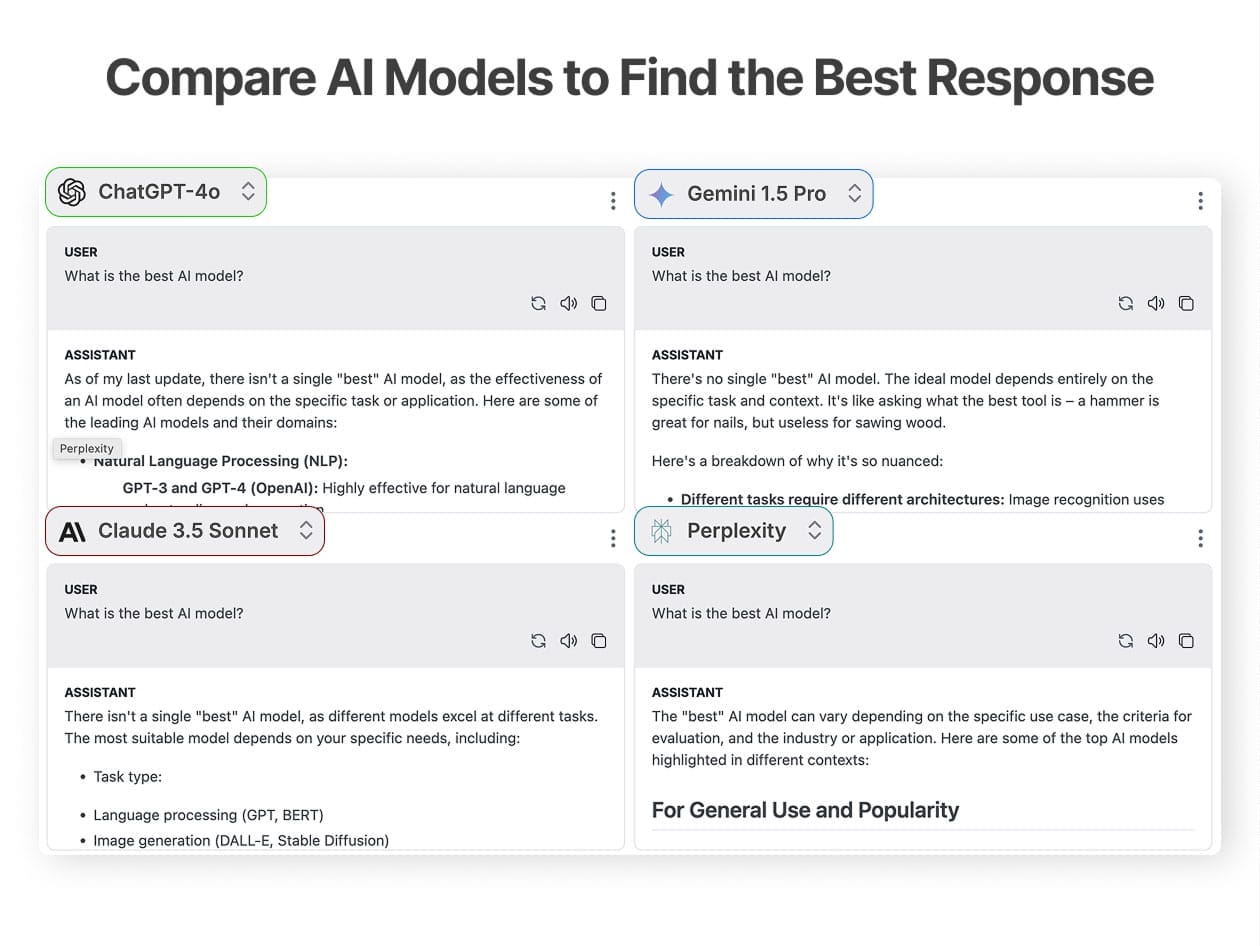 Explore and Compare Outputs from the Top AI Tools Side by Side, All in One Place