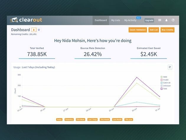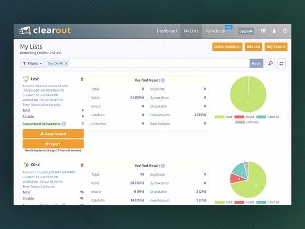 Clearout is an email validation and verification tool designed to help you target your actual prospects and protect your sender reputation. It provides you with enterprise-grade email verification that’s over 98% accurate to exponentially improve your email deliverability and clearing the honeypot, hard bounces, and non-valid emails out of the way. With duplicate removal, blacklist verification, autosuggestion, risk verification, mailbox quota verification, spam trap detection, deliverability score, and more, you can stay on the good side by maintaining a good relationship with your ESP, save money, and don’t want to waste time on email addresses of contacts that don’t even exist anymore.