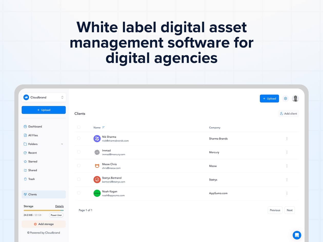 Need a more professional way to share files with clients? Tired of using generic cloud storage that doesn’t reflect your agency’s brand? Meet Cloudbrand – the first white-label cloud storage platform designed specifically for digital agencies and creative professionals. It’s like Brandfolder and Dropbox combined into a single platform, but designed for small teams who desperately want to showcase themselves when sharing creative and brand assets with clients, instead of traditional providers like Google Drive.