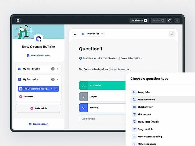 Learning management system (LMS) users want a better experience (83% of them say so). That’s why Coassemble was built, a UX-driven platform that lets you translate your business knowledge into clear, concise, and easily digestible courses. Coassemble is an online training tool that connects people with the information they need – anytime, anyplace. Create amazing training courses, track your team’s progress, and integrate with your most-used apps like Gmail, Slack, and Mailchimp. If you’re a startup founder, a manager, or an HR professional, it’s time to take Coassemble for a spin and see what it can do for your business.