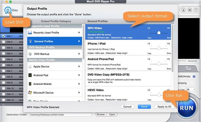 MacX lets you rip any DVD on Macbook Pro, Air/iMac to Apple-specific MP4, MOV, H.264, HEVC that are compact and playable on iPhone (11/Pro/Max), iPad Pro/Air/Mini, iPod & Apple TV;