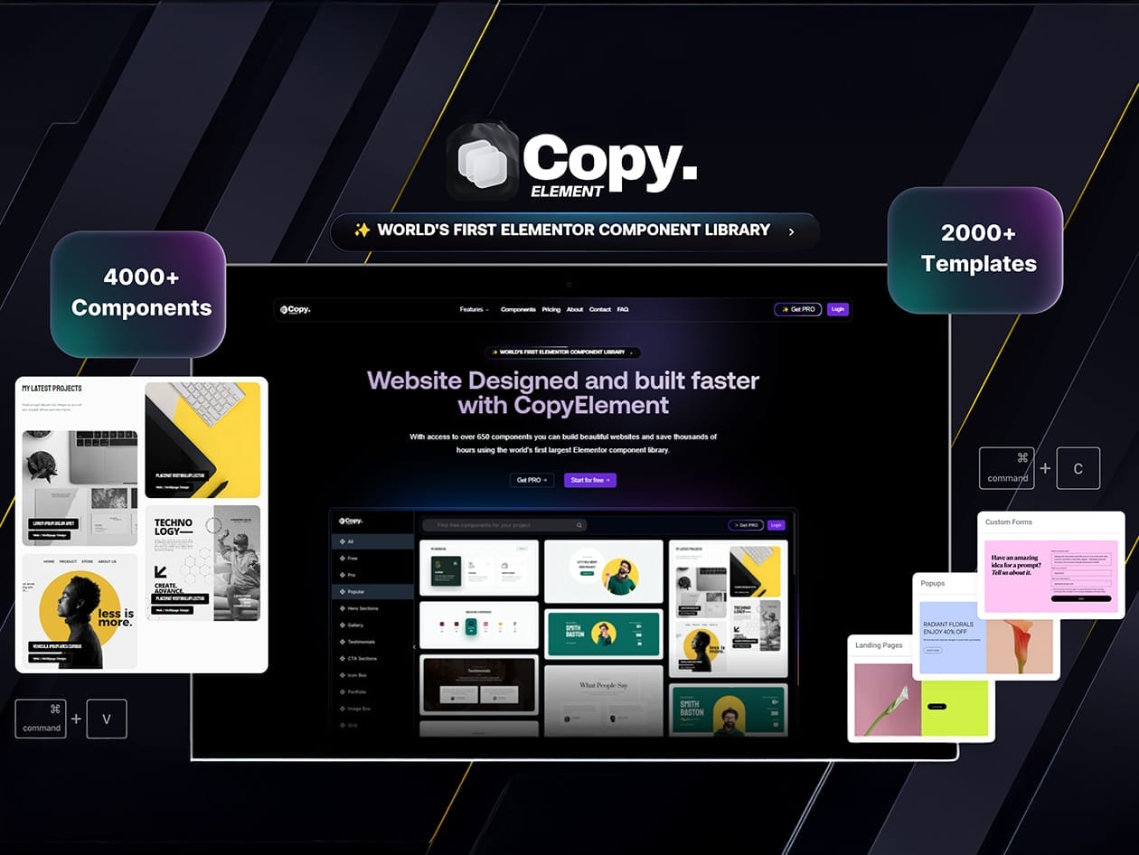 CopyElement is the world’s first plugin-free Elementor Component Library—built for designers, developers, and agencies who want speed without relying on extra addons. With 4,000+ performance-optimized, fully responsive components and template kits for Elementor Free & Pro, you can copy, paste, and launch beautiful WordPress sites in minutes. From hero sections and sliders to pricing tables, testimonials, and footers—every block is crafted for clean code and fast load times. Enjoy weekly content drops, unlimited site activations, lifetime updates, and seamless use across SaaS, eCommerce, portfolios, blogs, and more—all without installing a single plugin.