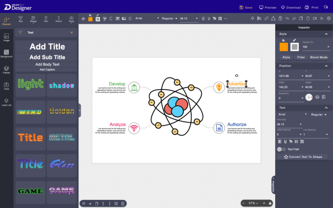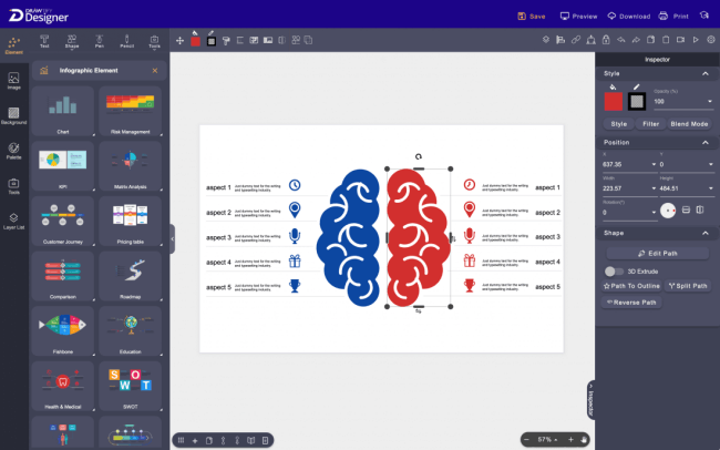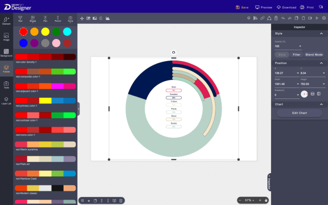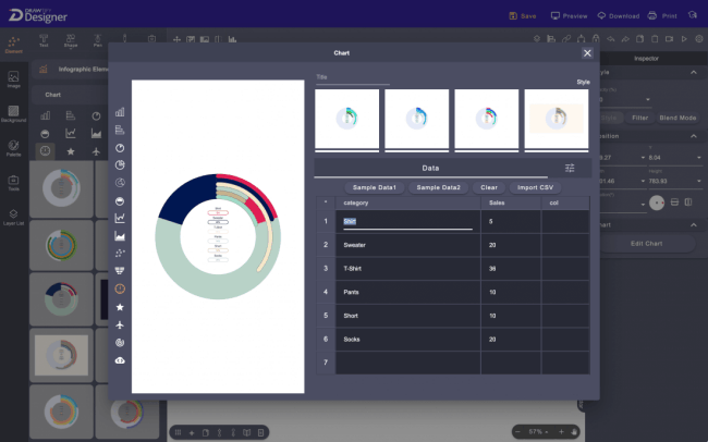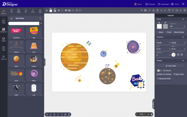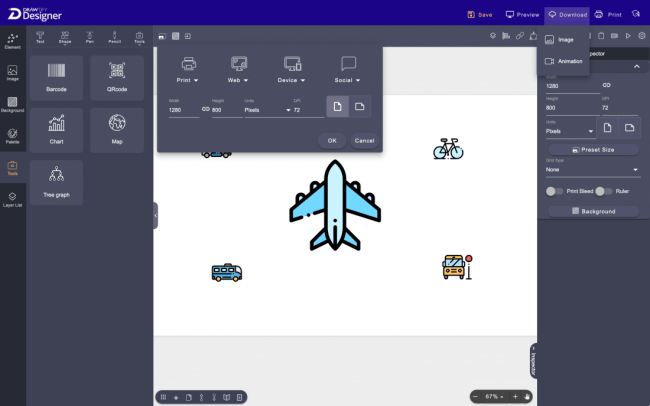 Drawtify has a wealth of built-in design resources, including high-quality editable design templates, design elements (art texts, icons, shapes, and infographic elements), practical graphic design plug-ins (barcodes, QR codes, charts, tree diagrams, Map, and calendar generator), 100M+ HD photos (powered by Unsplash), etc.
