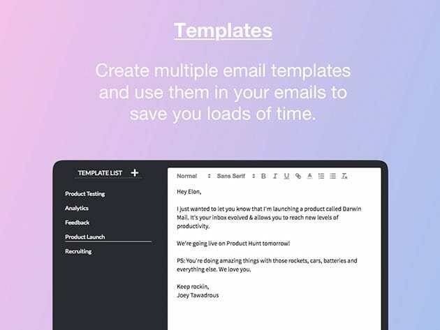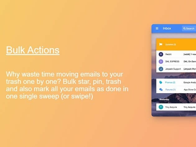 Enhance Gmail and get your Google Inbox features back with DarwinMail. This secure inbox tool aims to help you be more productive when dealing with emails and to-dos. You can organize and sort your inbox by category, sender, or subject with DarwinMail’s bundling feature. It also has a Reminders feature in which you can jot down your tasks so you don’t forget about them. Plus, the Snoozing tool allows you to snooze emails and take care of them on your own time. You’ll never have to worry about shooting an apology email for sending a wrong email with DarwinMail’s Undo Send feature. Simply put, Darwin Mail is the smarter way to use Gmail.