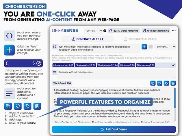 Unlock endless possibilities with DeskSense, your #1 AI-powered personal assistant designed to transform productivity and creativity. Effortlessly analyze text from any webpage, generate and summarize content, and get precise answers and suggestions on a wide range of topics. DeskSense excels in organizing and saving content with easy tagging and favoriting, while also creating complex Excel formulas and offering tailored coding solutions.