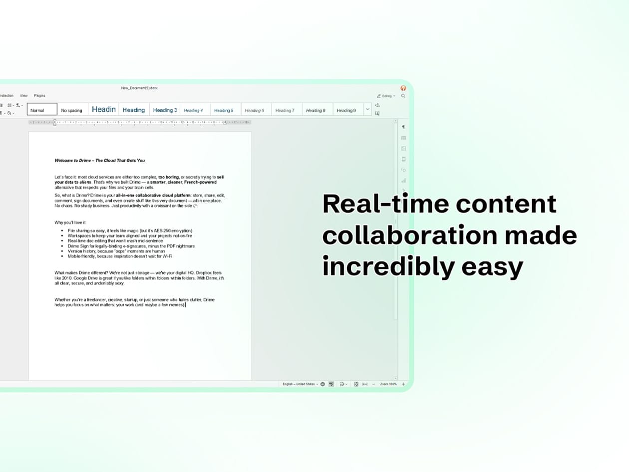 Drime is a secure European cloud storage designed for individuals and professionals. It combines powerful collaborative workspaces and an end-to-end encrypted Vault to keep your files safe. Upload, sync, and share files from any device, edit documents and media, stream large videos, sign documents, and control access with advanced sharing options, all within a privacy-first and easy-to-use environment.
