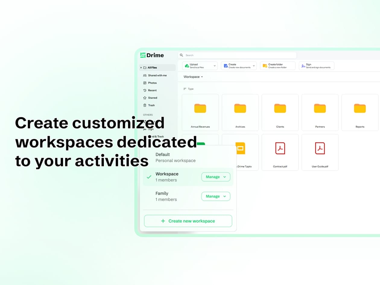 Collaborative Workspaces: Organize & manage files, clients, and projects in shared spaces