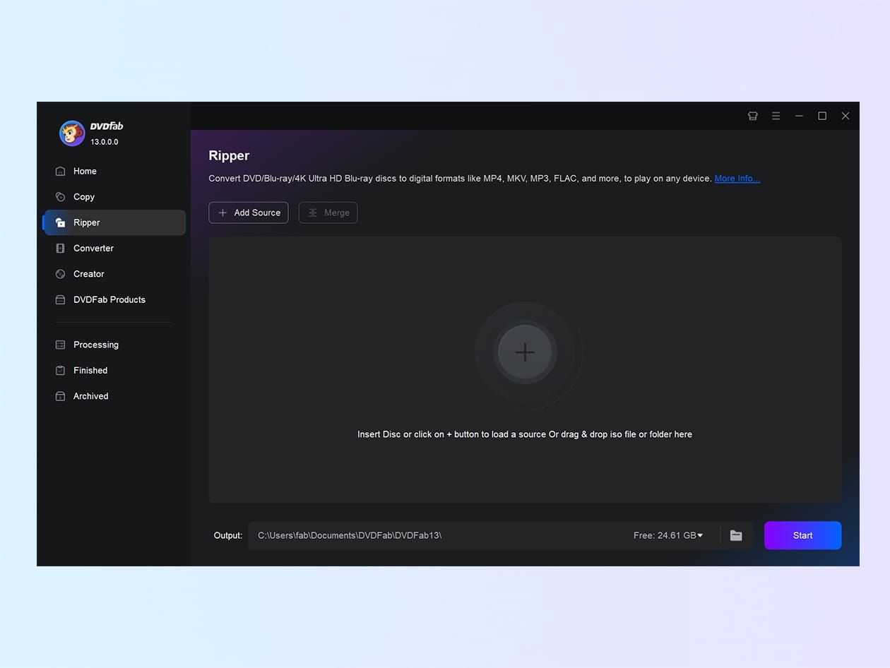1. Launch DVDFab DVD Ripper and insert your DVD disc, or load a DVD folder or ISO file using the “+ Add” button on the main interface
