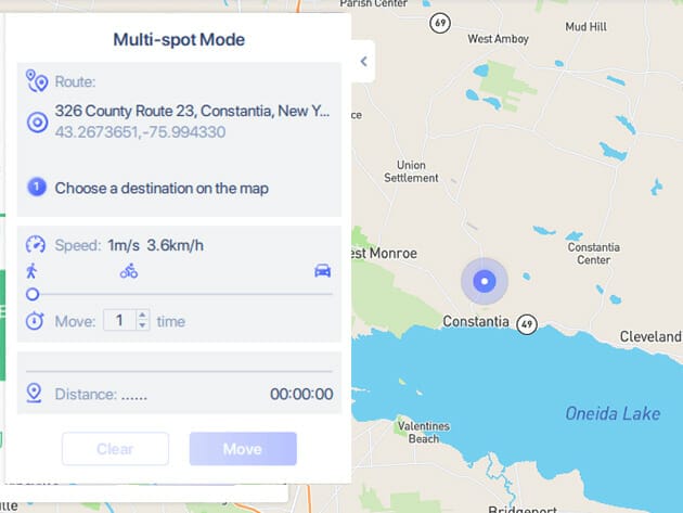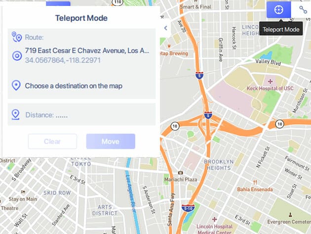 EaseUS MobiAnyGo allows you to explore the map freely, marking the current location of your device. You can easily change the location of the GPS spot with a click. Not just that you can move the GPS spot around the map, but you can also enter an address or the coordinates of the desired location in the search form.