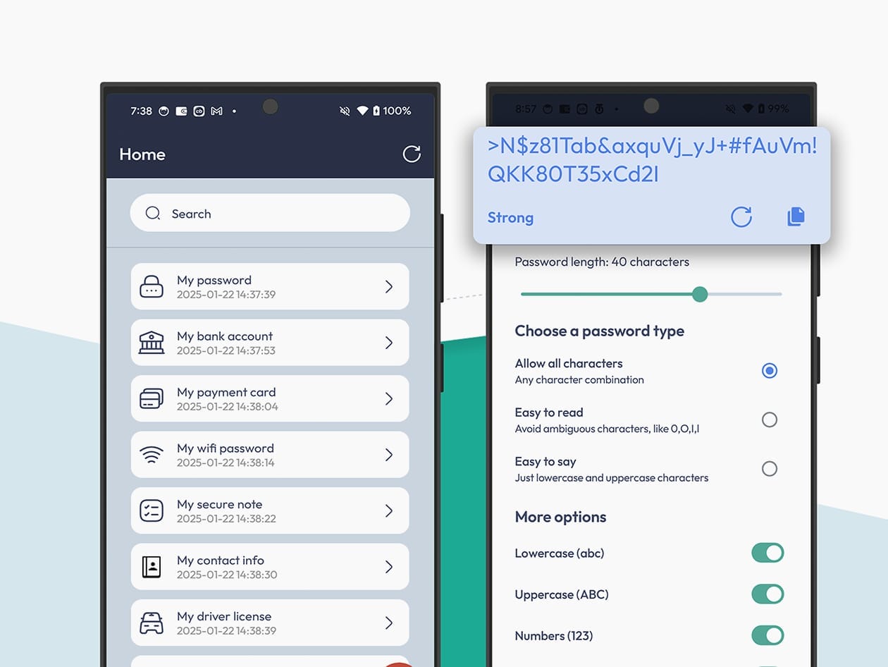 Say goodbye to password panic! With FastestPass password manager, you have the ultimate solution. FastestPass is your all-in-one password manager designed to take the stress out of staying secure. Easily generate ultra-strong passwords, store them in a fully encrypted digital vault, and access them instantly with secure autofill across all your trusted devices. The FastestPass password manager security vault lets you store other sensitive information for safekeeping, including ID card numbers, bank account profiles, notes, social media details, and much more. All of this is managed by a single master password that only you have access to.