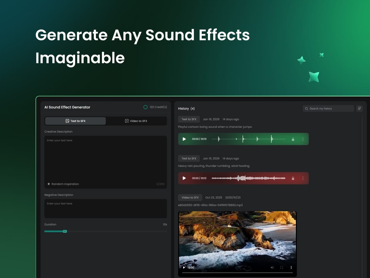 Immersive Sound Effects: Enhance games, videos & presentations with synchronized AI audio that elevates your content to a professional standard.