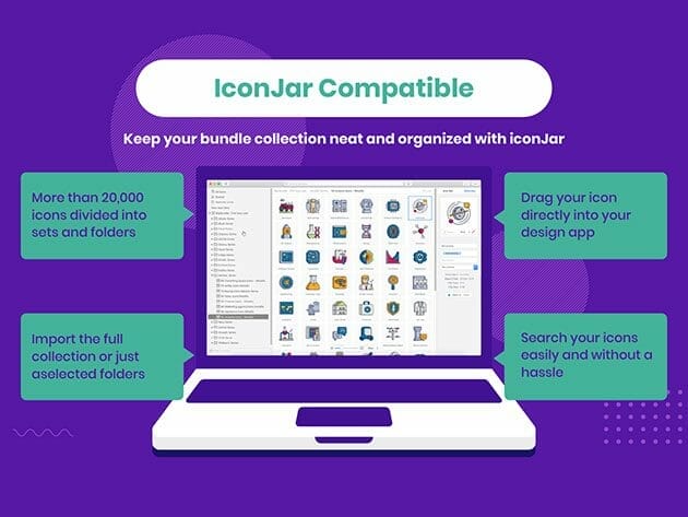 Never pay for icon sets or subscriptions again, this bundle with free lifetime updates has it all. And if you’re not impressed, the bundle was voted #1 Product of the Day and #2 Product of the Week on Product Hunt! The icons are compatible with your favorite software. Edit with Illustrator, Sketch, Figma, Procreate, Affinity Designer or Adobe XD and use them where ever you want, may that be a Powerpoint presentation or on that greeting card you are designing with Canva. Even the Iconjar files are included to make it really easy to find the perfect icons for your project.