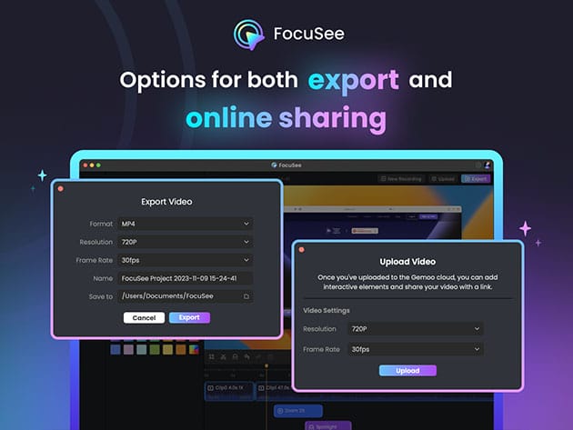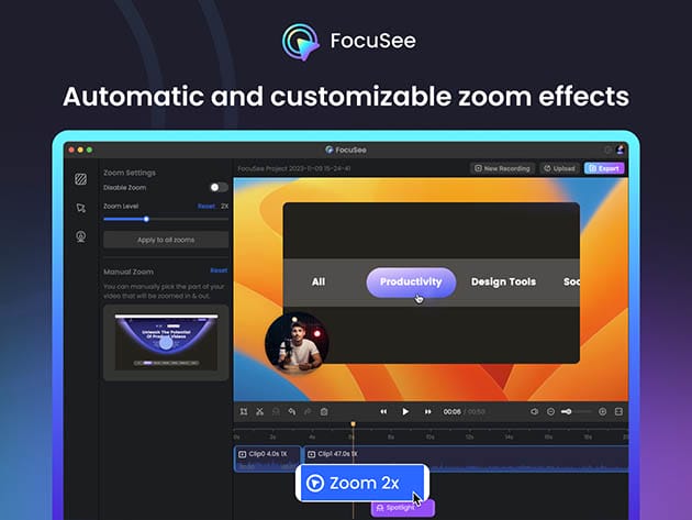 Let FocuSee automatically add pan & zoom effects, and a nice background for you. Once you finish recording, you’ll have a video ready to shine.