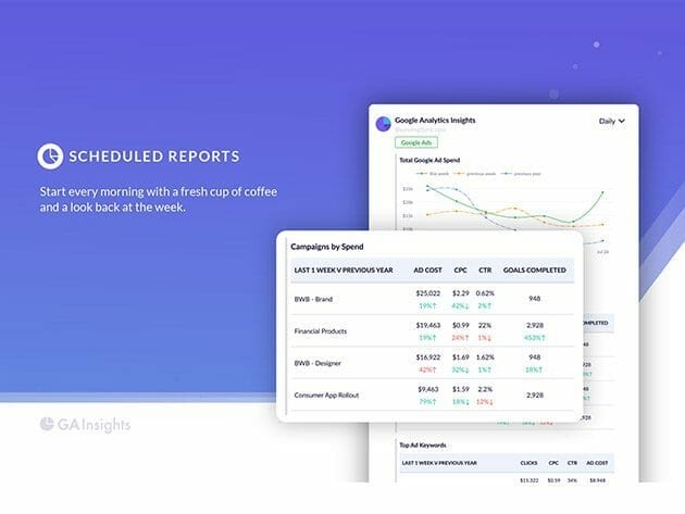 Scheduled reports. Get daily, weekly, & monthly reports to keep you and your team informed