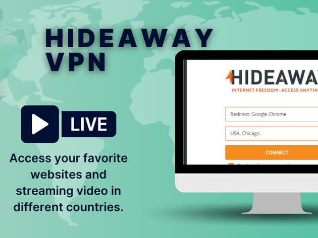 Built-in kill switch. If you lose your internet connection, HideAway will cut the connection so that your real IP address and information is not leaked.