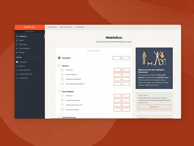 Of the billions of startup ideas generated every day, almost none actually sees the light of day. It also takes a thoughtful process to help you determine if your idea can actually thrive as a viable business. But unless you’ve built a startup before, where do you begin? That’s where Idea Validation Bootcamp comes in. It’s a comprehensive course that takes an actionable approach to idea validation. It has 4 lessons: Research, Expert Validation, Customer Discovery, and Elevator Pitch. Each phase is capped off with an assignment. By the end of the course, you will have a strong sense of the viability and business case for your idea. This bootcamp also includes a community of mentors and students, observable Q&A sessions, and custom Learning Management Software.