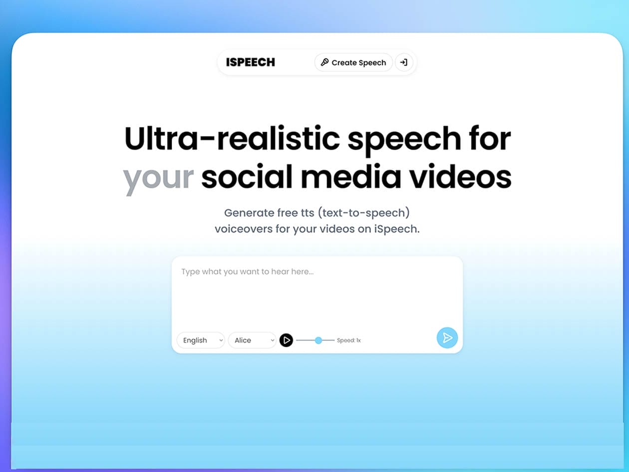 iSpeech is a modern, AI-powered text-to-speech platform built for anyone who wants fast, natural, and affordable voice creation. With the Plus Plan, you just paste your text, choose from 14 expressive voices, and instantly generate realistic audio right from the browser. Perfect for voiceovers, podcasts, training materials, e-learning content, social media, language learning, and accessibility tools.