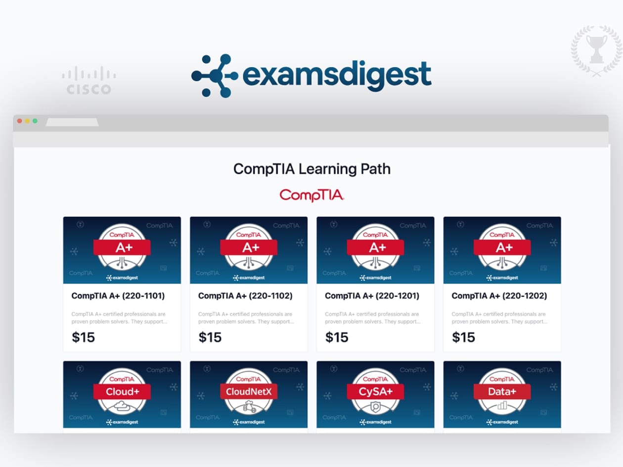 ExamsDigest isn’t just another study tool—it’s your ultimate certification training partner. With over 3,000 exam simulators and more than 50,000 practice questions across 70+ learning paths, this platform is designed to help you train the way you’ll be tested. Whether you’re diving into IT for the first time or leveling up in cloud, cybersecurity, networking, or project management, you’ll get real exam-style questions tailored to certification objectives from CompTIA, AWS, Microsoft, Cisco, and more. No fluff, no filler—just structured practice to help you walk into your exam with confidence, not cramming.