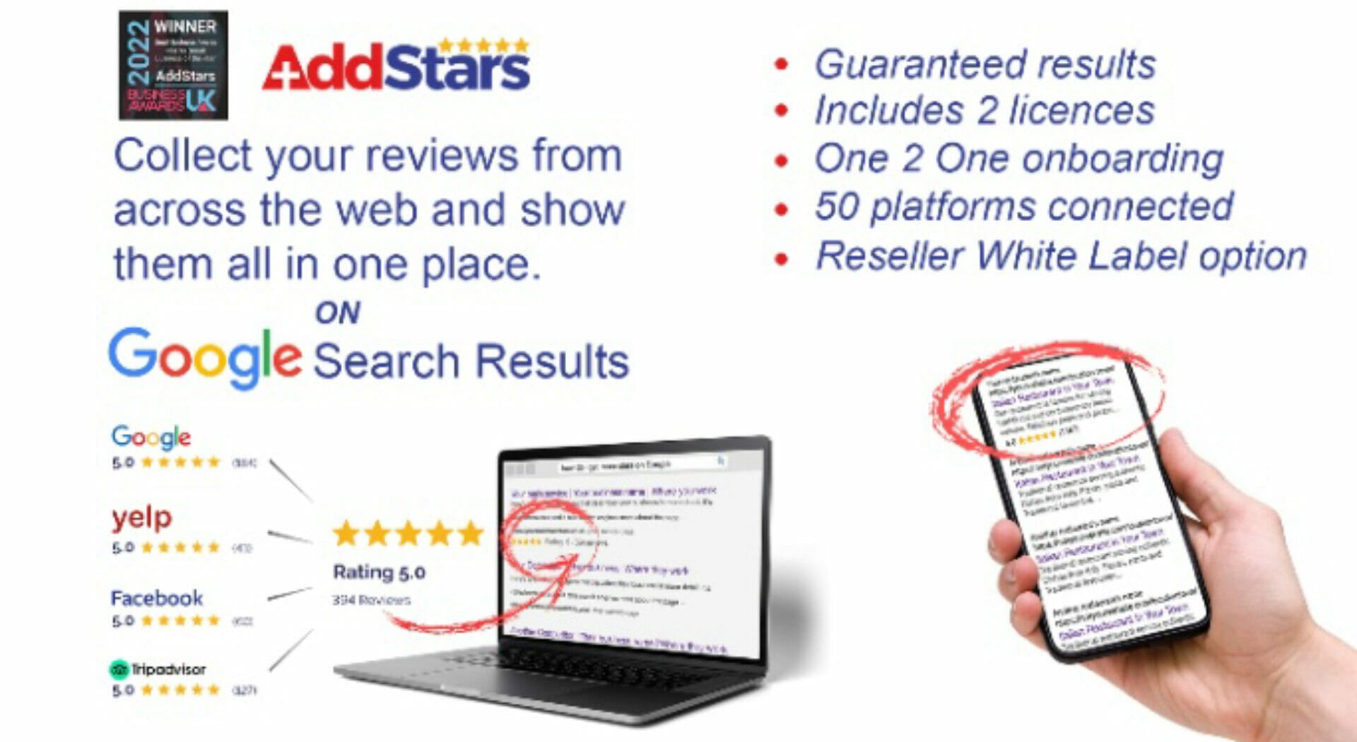 Why wait for customers to visit your website to see your reviews when AddStars will display them ALL, right where customers are searching – On Google’s search listings.