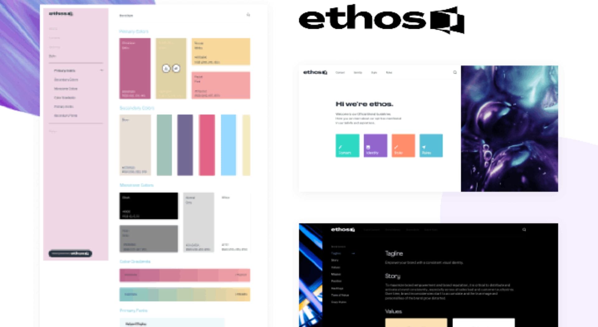 Activate your brand identity with beautiful online Brand Guidelines. ethos makes it easy to create beautiful and organized Brand Guidelines that becomes the single source of all brand content.