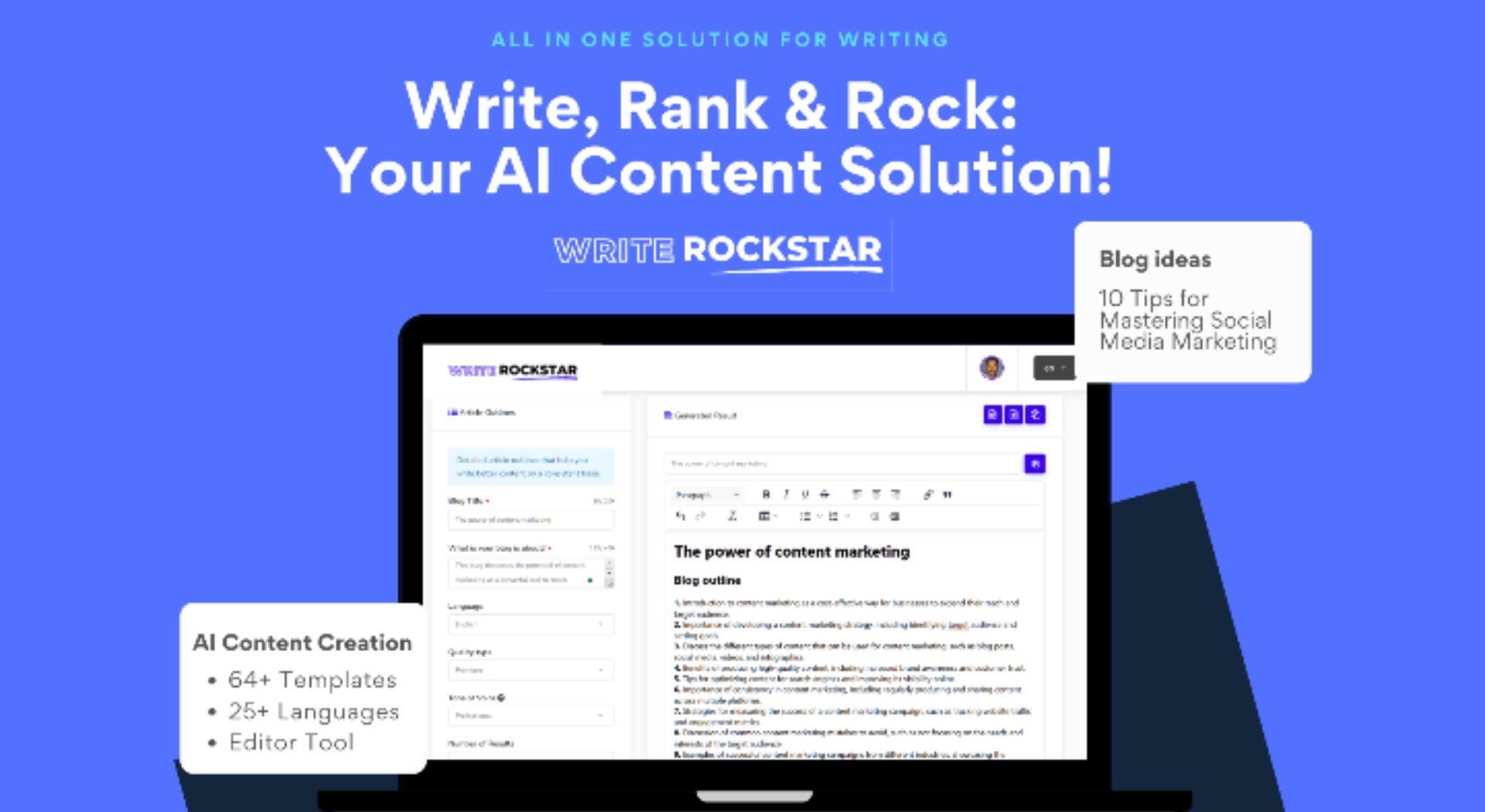 Writerockstar is an AI writing platform that helps you create SEO-friendly content to boost organic traffic to your website in over 25 languages.