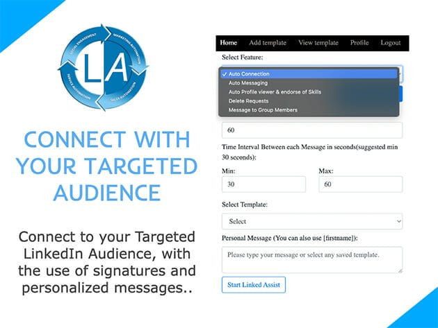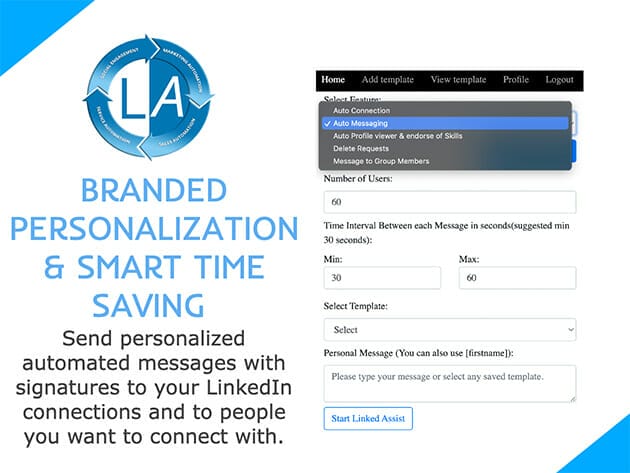 Linked Assist is a LinkedIn Marketing tool that lets you connect with targeted audiences. You can use signature and personalized messages to dominate your competitors by connecting with strong networks of professionals. With Linked Assist, you can make more effective connections that could help you grow your business or career.