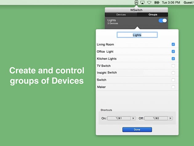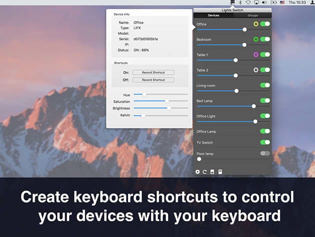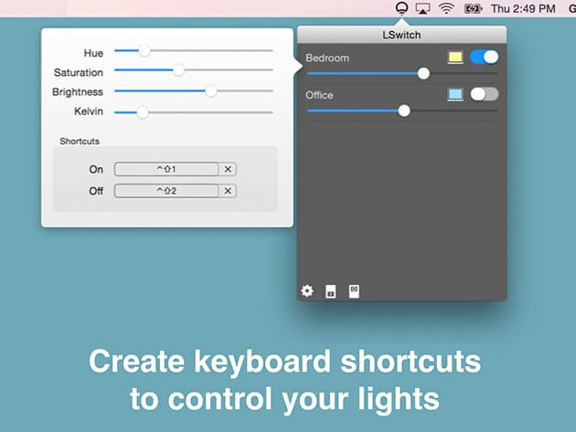Controlling your lights from your phone is cool, but there are a lot of times when it would be more convenient to control them from a different device. Like, for instance, your Mac. That’s where Lights Switch come in. With this app, you can control all of your Philips Hue, LIFX and WeMo devices right from the menu bar on your Mac. Change the color or brightness of each bulb with a single click, and even turn them on and off. And if you want to take it up a notch, we’ve got keyboard shortcuts that allow you to control any device or group of devices with the push of a button.