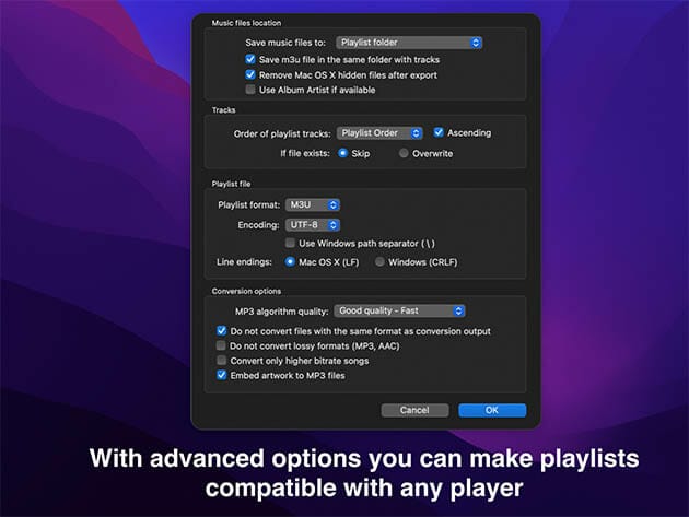 M3U playlist file. Pay your playlists to any compatible player or even import your playlist to another iTunes library
