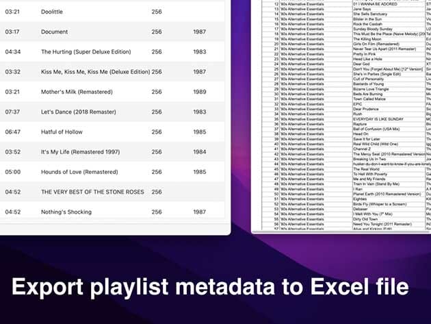 Export songs metadata. App can create CSV or Excel file with songs metadata