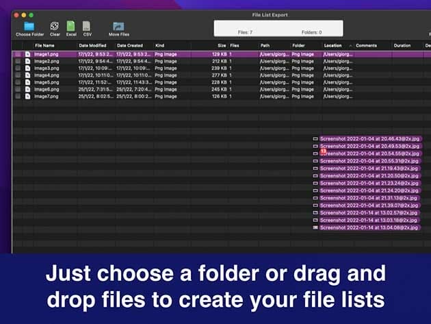 Just select a folder or drag and drop files to get a list with all files and folders to Excel or to a CSV file. You can choose if you want to include the files from all subfolders. Preview and edit the list before exporting to the file. Easily search and filter the file list records.