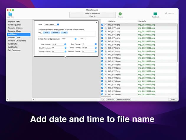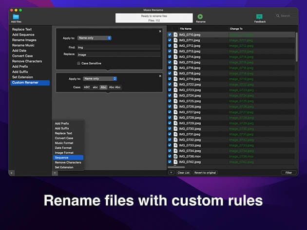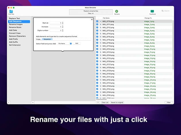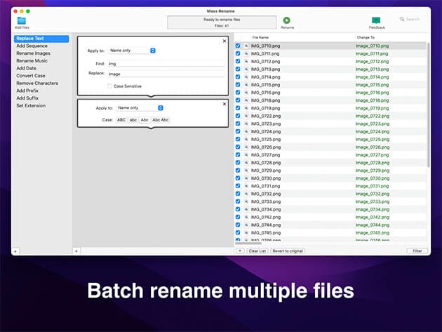 An easy and fast utility to batch rename multiple files on your Mac. Create your custom rename workflows to rename your files. Rename files in many ways: