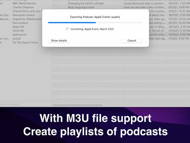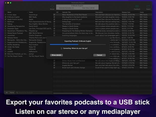 Export your favorite podcasts. Choose your favourite podcasts shows & episodes to export