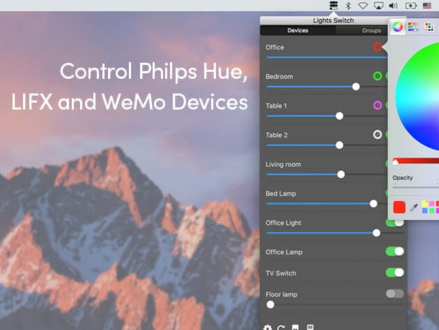 The only Mac app that allows to control Philips Hue, LIFX, &WeMo devices
