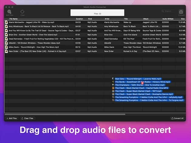 Stop wasting time on complicated audio transcoding software. With Music Audio Convert, you can convert any kind of audio format to MP3 or AAC files in seconds. Just choose or drag and drop the audio files you want to convert, choose MP3 or AAC output format, and select a folder to save your new files.