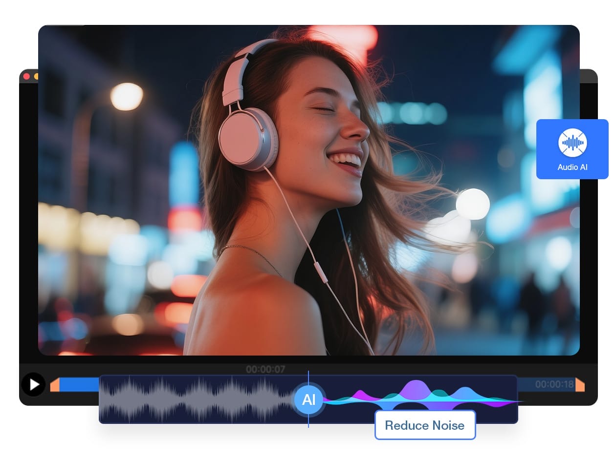 Denoise Video: Remove wind, hiss, or background noise from video in one click.