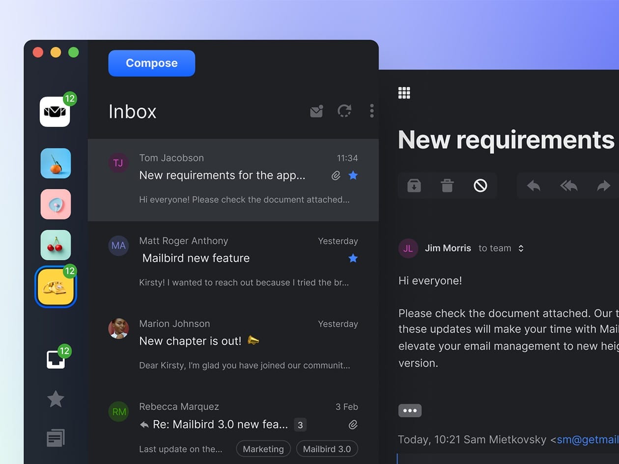 Tired of juggling tabs for every email account? Mailbird simplifies your workflow by unifying all your email accounts in one sleek app for Windows and Mac. View all inboxes at once or switch between them effortlessly. Integrate your favorite tools—like calendars, project boards, and social media—directly into your inbox. Track emails, undo sends, block spam, and even boost productivity with built-in AI assistants like ChatGPT and Claude. Mailbird is the smarter, faster way to manage email chaos.