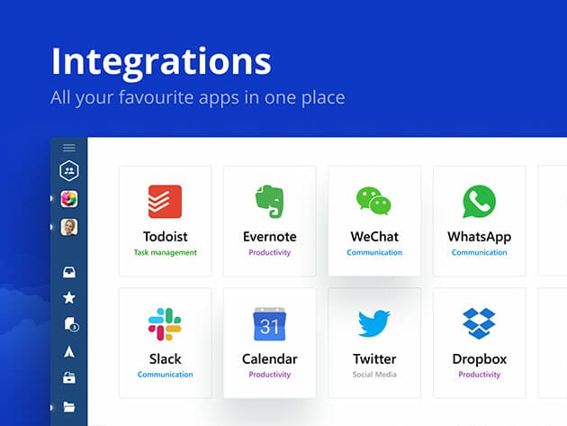 • App integrations. Built in apps like Facebook, Twitter, Whatsapp, Dropbox, Google Calendar, Asana, Todoist, & many more