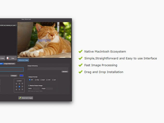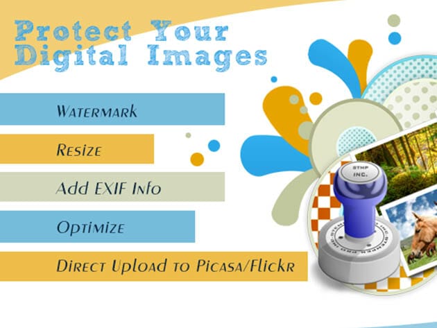 Softpedia:“Add one or more images, create various watermark templates, add text and logos in a few easy and quick steps with adjustable output quality.”