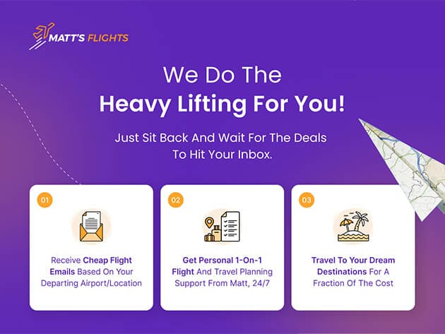 - Get personal 1-on-1 flight & travel planning support from Matt, 24/7