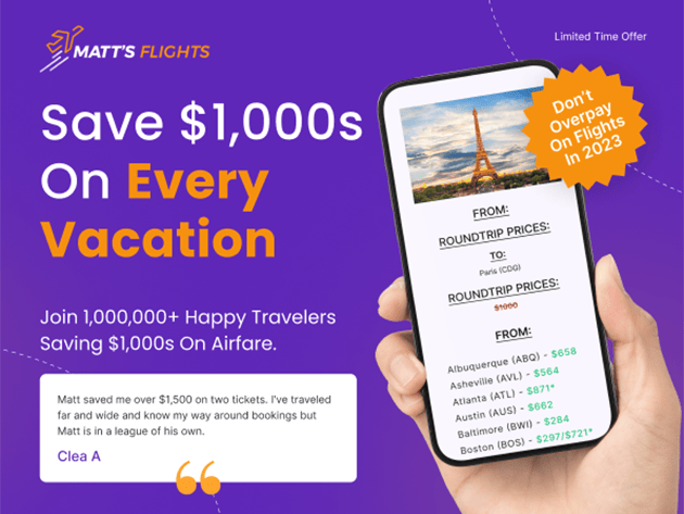 Countless people are consumed by wanderlust but just can’t afford to travel as much as they’d like. If you’re one of them, here’s a little secret: Airlines make mistakes. You can take advantage and go on vacation for a really cheap price with Matt’s Flights!