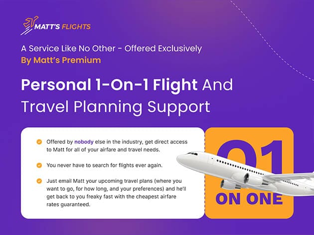 - Get personal 1-on-1 flight & travel planning support from Matt, 24/7